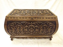 Masif ceviz ağacı el oyması bombeli sandık.
